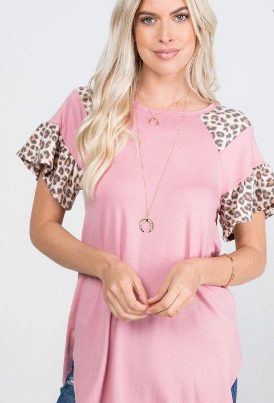 This beauty is our favorite buttery soft P&Rose material in a beautiful mauve color with leopard sleeves! :) She is SO good and perfection for spring/summer!